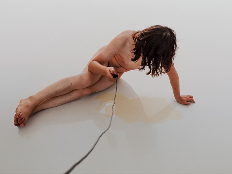 基于这些反思,我尝试了一种模仿行为——小便后,我凝视着尿液中的倒影,拍了一张自拍照。这一行为既带有对自恋的些许流露,也是自我反思的象征性表达,还夹杂着一丝自嘲意味